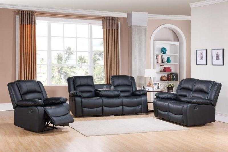 A stylish bonded leather sofa, ideal for a traditional but smart home. The high density foam and fibre filled back cushions offer great support while the simple 2 stage action moves you easily from a seated to a reclined position. This suite includes a pull down drink holder in the 3 seater. Measurements:- 3 seat:- 200cm length, 95cm height, 90cm seat depth 2 seat:- 165cm length, 95cm height, 90cm seat depth We also do other combinations and colours of this suite. If you would like other information or to place order over the phone please feel free to give our sales team a call on 07491577497 074915774...(click to reveal full phone number) (24 Hour / 7)